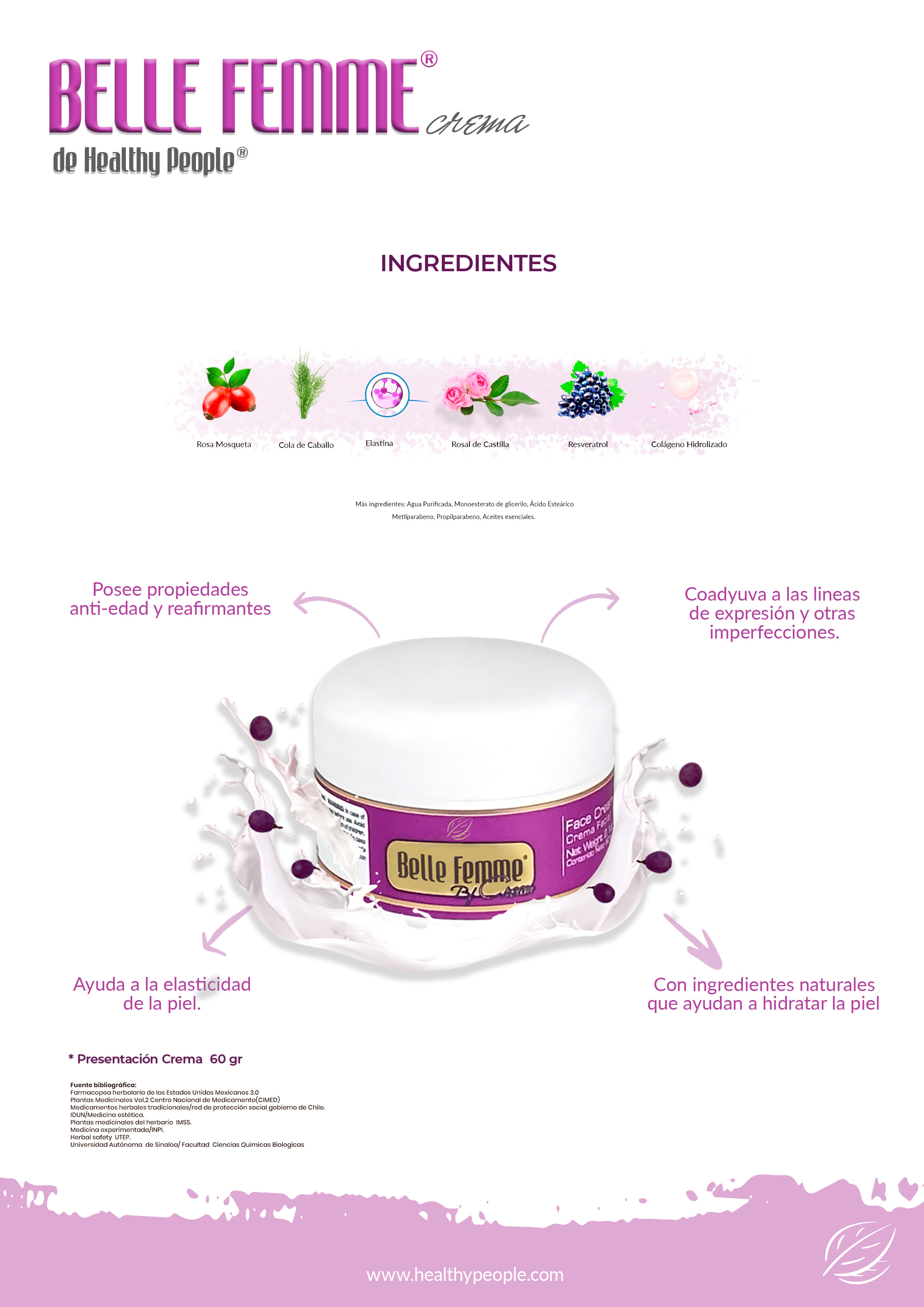 Healthy People®, pone en tus manos este magnifico producto, en el que se han logrado conjuntar los beneficios de los mejores ingredientes conocidos de la naturaleza, para el cuidado de la piel, como el colágeno, que es una rica fuente de antioxidante y nutrientes.