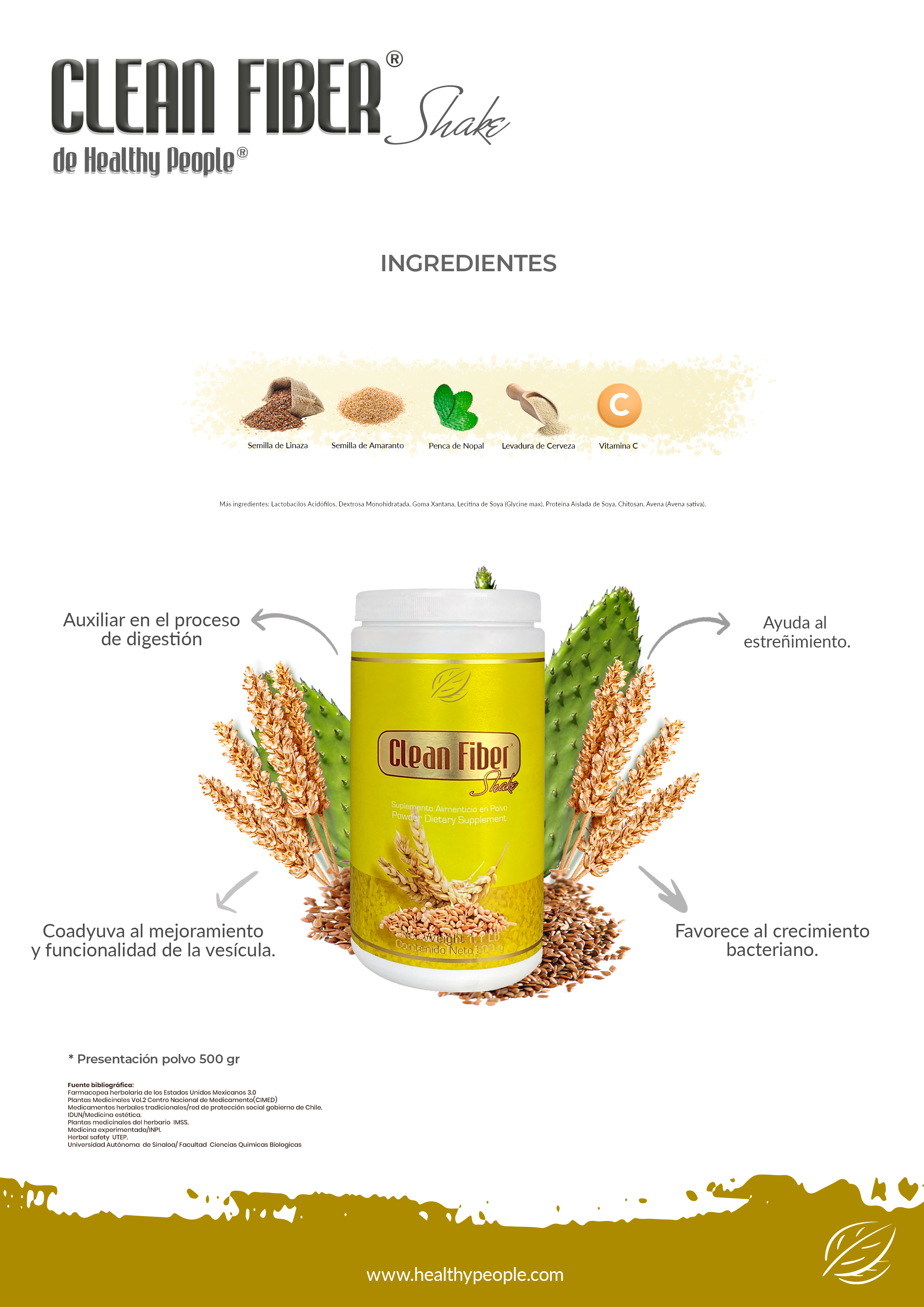 Clean Fiber Shake®, Su cantidad de fibra es superior a cualquier otro cereal, por ello logra arrastrar todos los residuos que el organismo no necesita, ayudando también a evitar el estreñimiento.