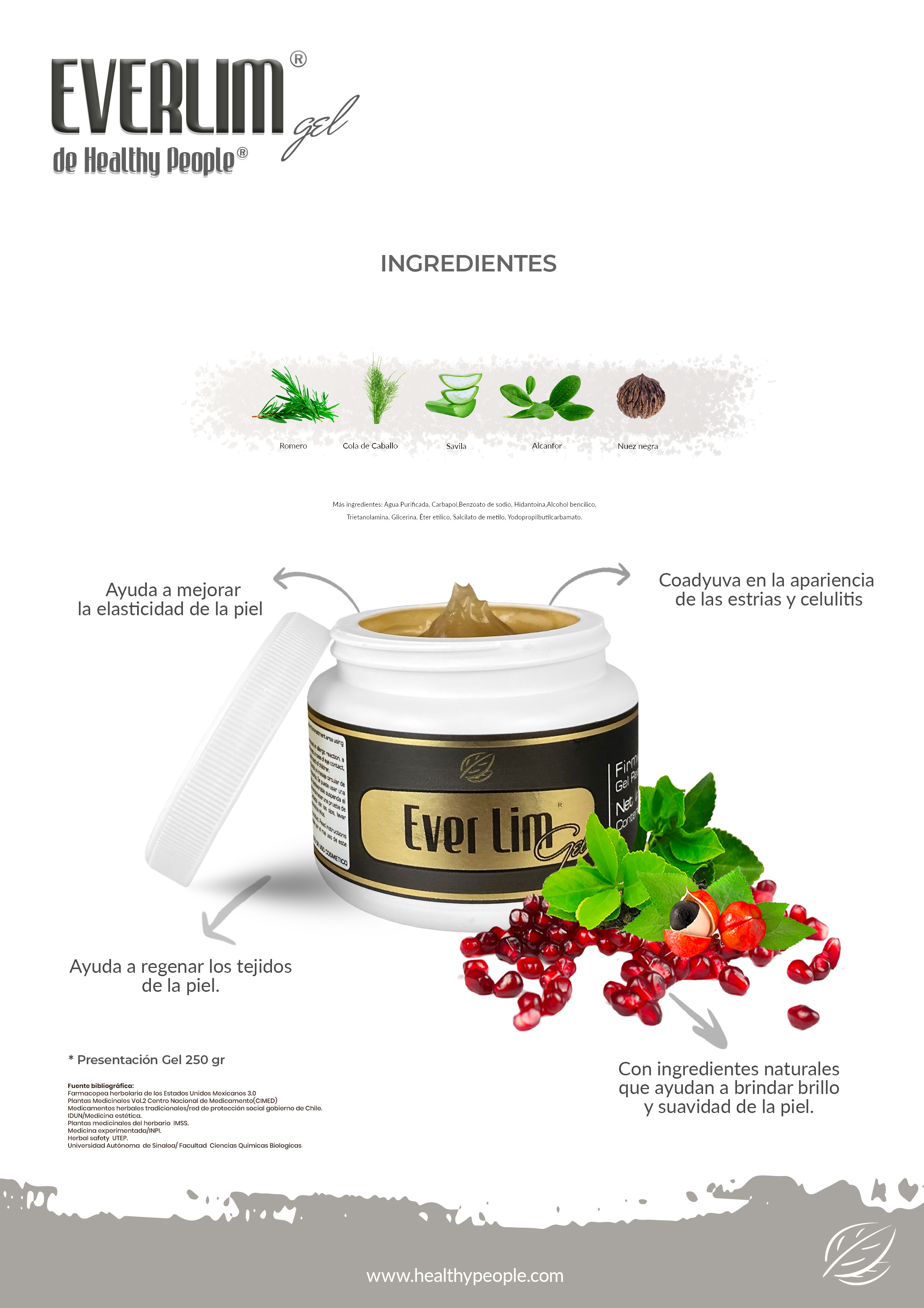 Al aplicar Everlim gel en nuestro cuerpo permitimos que los extractos herbales penetren la epidemis y sus notables propiedades actúen directamente en el área tratada.